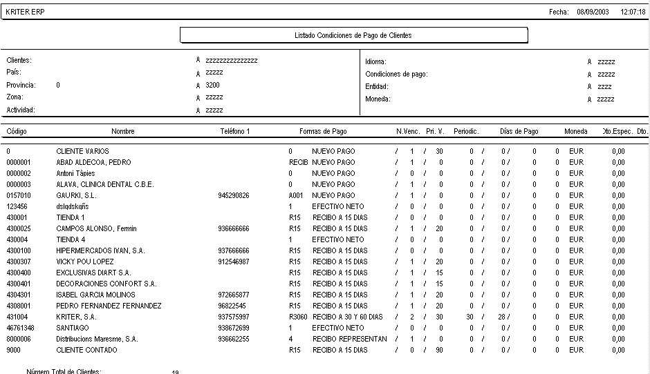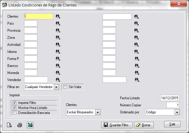 Nos permite obtener el Informe de las condiciones de pago de los clientes según el filtro indicado.