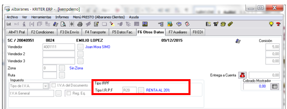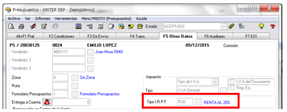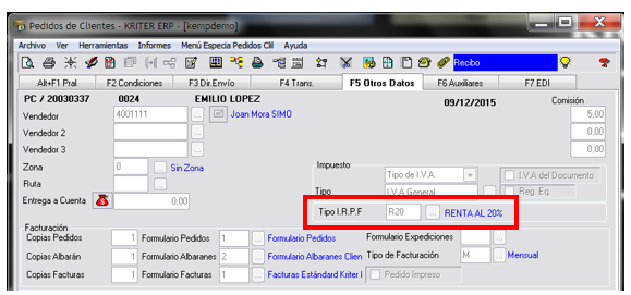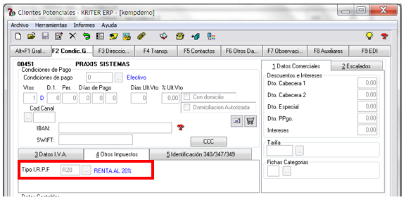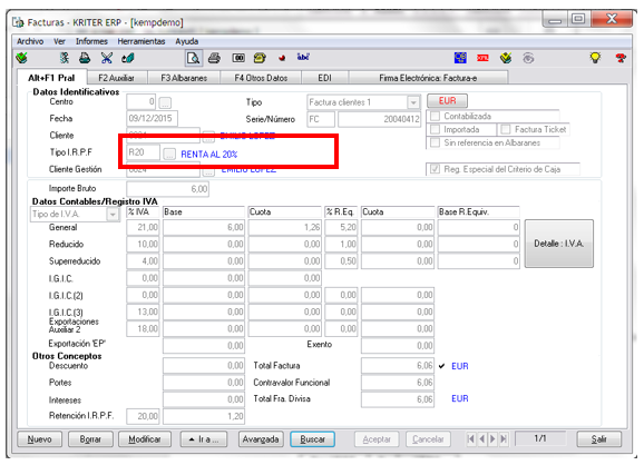 Si hasta ahora únicamente utilizábamos el IRPF en las facturas de Proveedores, disponemos también de la posibilidad de aplicar esta retención a los Clientes y a los Clientes Potenciales arrastrando la información a lo largo de todo el circuito de ventas, puesto que es un concepto que influye sobre el total de la Factura: