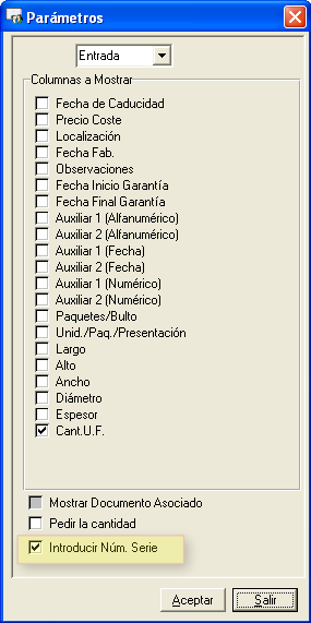 En salidas de artículos con control de número de serie es posible que en la pantalla de salidas de series, la columna Numero de Serie aparezca en la primera posición y que se pueda buscar por código de barras por ese campo.