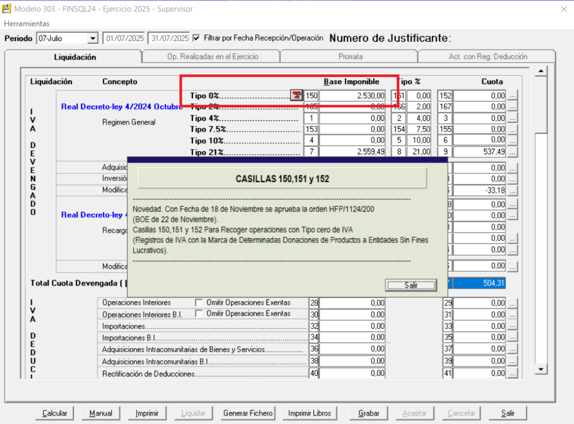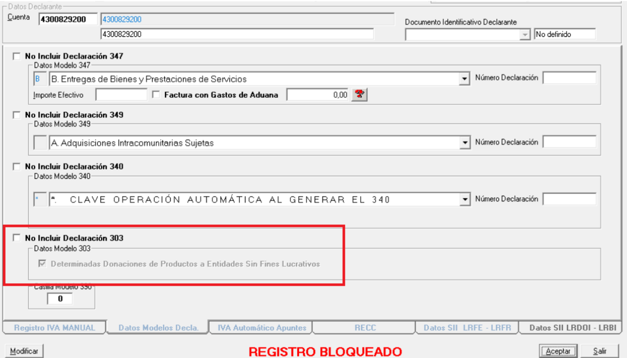 Al tener la marca en el registro de IVA, nos permite informar este tipo de operaciones, de forma automática, en la declaración del modelo 303. Anterior a este circuito, el importe de la base imponible para este tipo de operaciones se recogía de forma manual en la casilla 150 del modelo 303