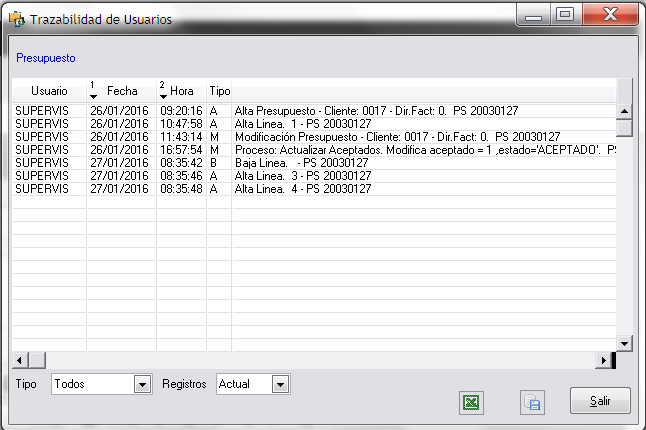 Desde esta opción consultaremos la trazabilidad del presupuesto activo.