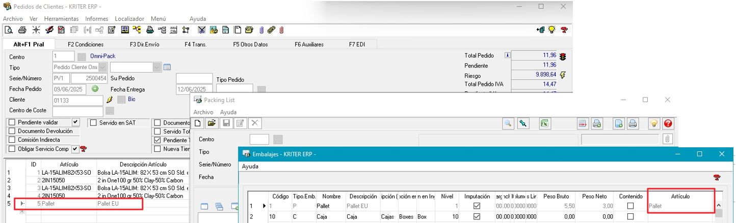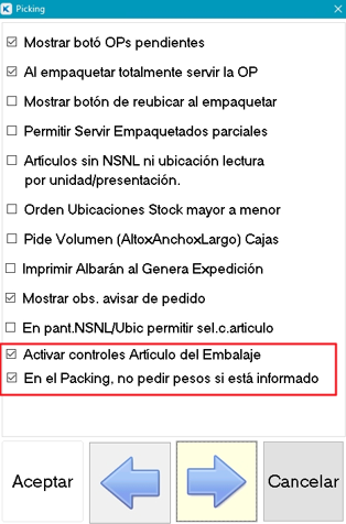 El programa propondrá el último tipo de embalaje seleccionado.