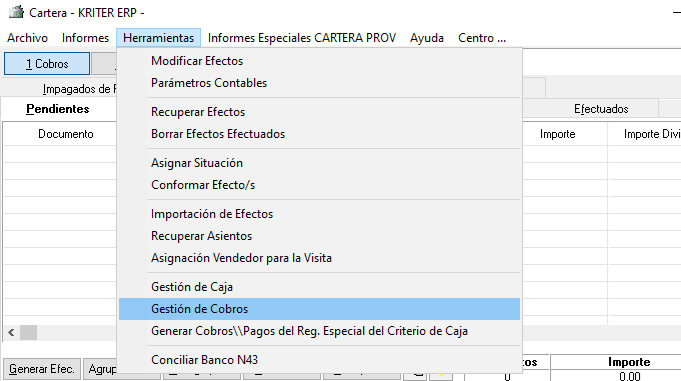 En el caso de los efectos de Cartera, al hacer la vinculación con el movimiento del banco, los efectos, quedan automáticamente efectuados ya que al realizar esta operación estamos indicando al programa, que el dinero que ha entrado en el banco es para efectuar esta operación.