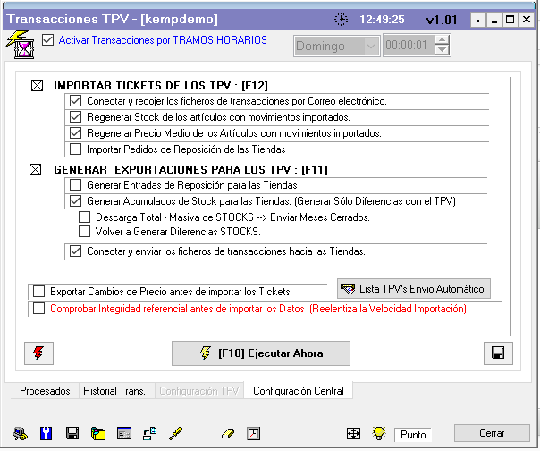 Podemos desde el módulo de transacciones, ejecutar una transacción global de envío y recepción, mediante la tecla F10 de la pantalla de Configuración Central.