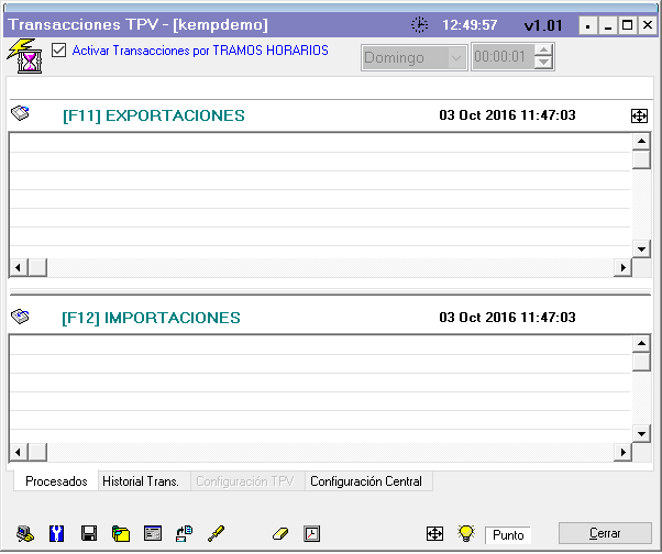 También es posible realizar una exportación o importación de datos, desde la pestaña de procesados, mediante las teclas F11 ó F12.