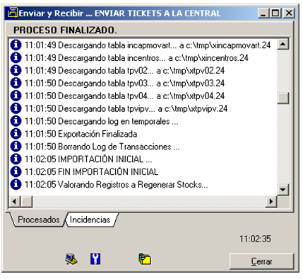 Mediante éste botón las cajas Enviarán todos los Tickets (en caso de Tiendas propias), Pedidos (franquicias y tiendas propias) y recibirán todas las actualizaciones de artículos, precios, etc. de la Central.