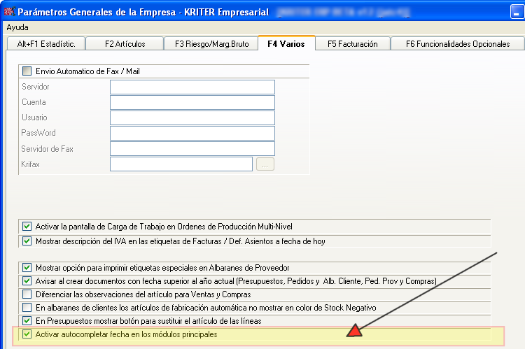 - Activar autocompletar fecha en los módulos principales. Con esta opción de autocompletar la fecha al introducir una parte de la fecha, se autocomplete el resto.