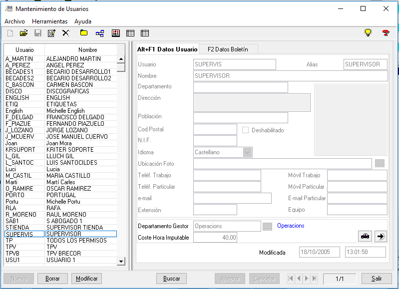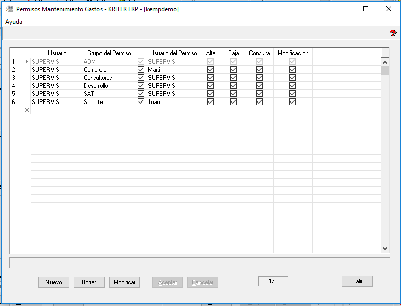 Los usuarios y sus datos, están vinculados directamente del Supervisor de Kriter ERP. Cada vez que entramos se actualiza, igual que cada vez que salimos del Supervisor comprueba los usuarios de las empresas.