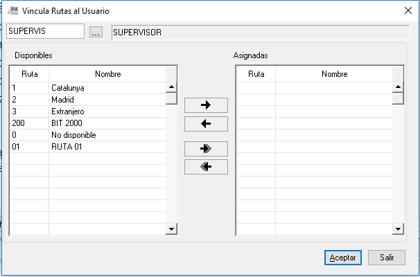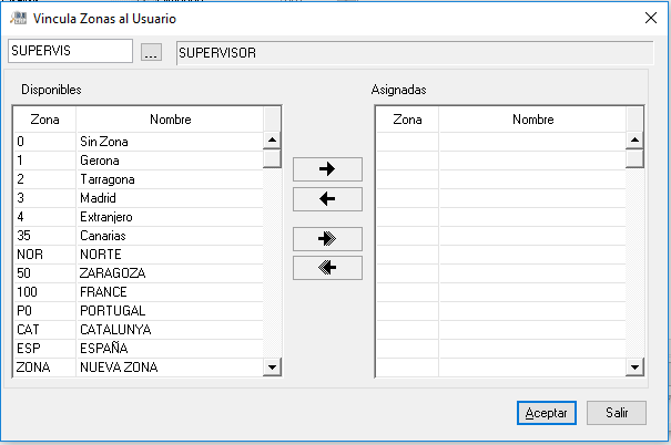 Si tenemos habilitado en Auxiliares, el trabajar con rutas y zonas por usuario, tendremos habilitados estos dos iconos que nos permitirán asignar las rutas y zonas al usuario