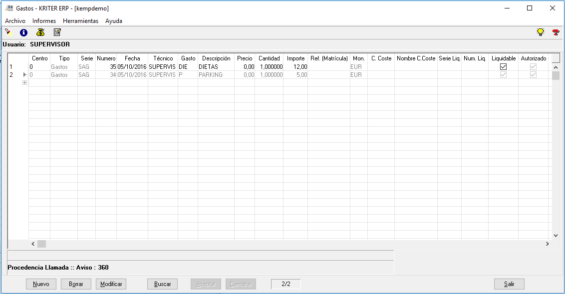 Esta implementación nos permitirá llevar tanto el control de los gastos imputados a un cliente como los gastos producidos por un técnico, de manera que después podamos facturar esos gastos al Cliente.