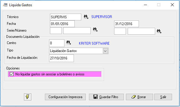 Desde la utilidad de Herramientas/ Liquidar Gastos Técnicos disponemos de una opción para no liquidar gastos que no estén asociados a boletines o avisos.