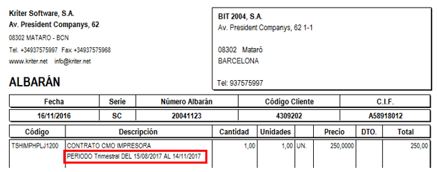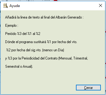 - Generar Descripción del Periodo del Contrato: Indicaremos si se desea generar descripción del periodo del Contrato en el albarán.
