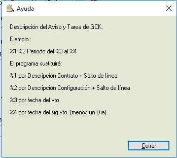 - Descripción de la Tarea en GCK: Indicaremos como deseamos sea la descripción en la Tarea del GCK.