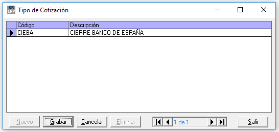 Informaremos de los tipos de cotización que vayamos a utilizar. Nos ofrece por defecto la cotización de cierre del Banco de España.