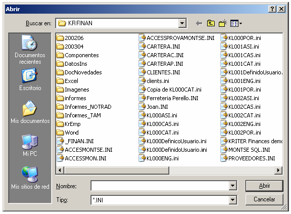 2. Creación Fichero *.INI desde Kriter Finanzas