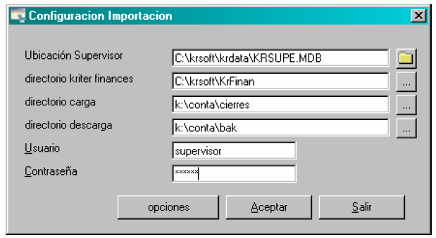 4. Configuración de la importación, ejecutando el KrTaskImp.exe situado en KrFinan del Programa Kriter Finanzas