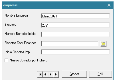 Una vez realizada la entrada de datos de todas las empresas seleccionaremos <Grabar> y <Salir>