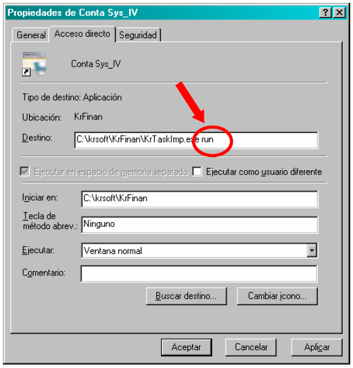 Podremos cambiar el nombre al acceso directo para aclararnos mejor, en este ejemplo le hemos llamado Conta Sys IV.