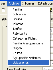 - Ubicaciones: Si disponemos del módulo de Multiubicaciones podremos definir el mapa del almacén ubicado. También accesible desde el módulo de Artículos.