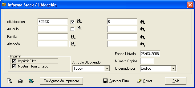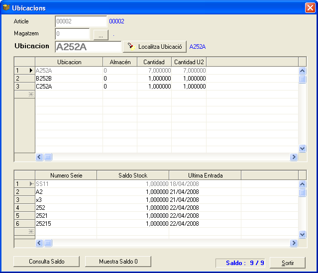 En cualquier consulta de Stock (tecla de función F7). Es posible consultar la ubicación del material.